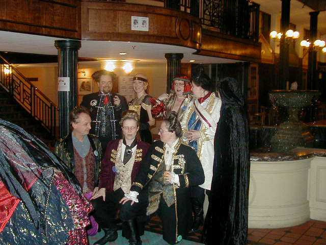 ![]() Do they come to blows? | ![]() All costumes on stage at end | ![]() Michael gets into the spirit of the Rocky Horror... |