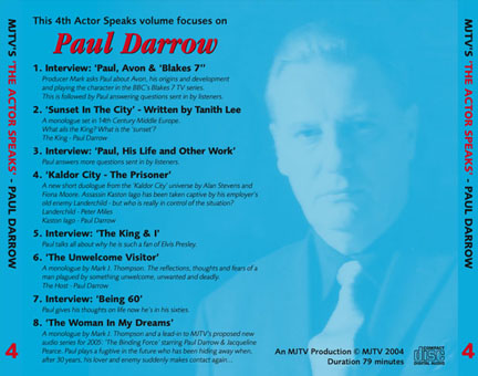 (1) Interview - Paul, Avon & Blake's Seven: Producer Mark asks Paul all about Avon, his origins and development and playing the character plus more, this is followed by Paul answering questions sent in by listeners.